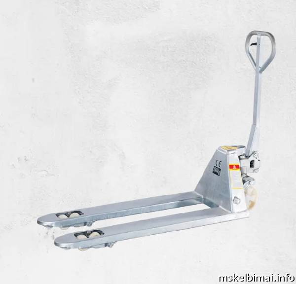 Naujas rankinis cinkuotas hidraulinis palečių vežimėlis WH-25G skirtas darbui drėgnoje, šaltoje ar agresyvesnėje aplinkoje.
